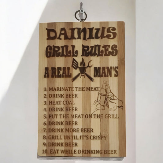 "Real man grill rules" chopping board